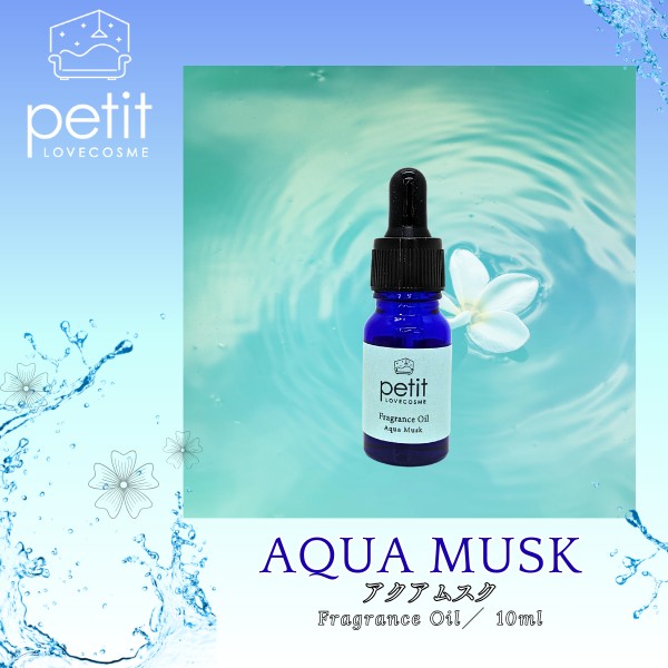 ラブコスメプチ フレグランスオイル(アクアムスク)10mLは、マリン系の爽やかさにムスクの柔らかさを合わせた香りのフレグランスオイルです。