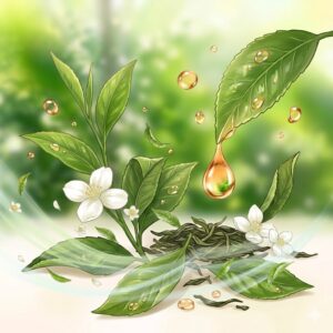 本物のチャ葉エキスを配合。甘すぎず、みずみずしい香りは、仕事中のリフレッシュや自分へのご褒美にもぴったりです。