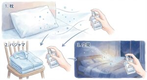 使い方はとっても簡単!就寝前やリラックスしたい時に、以下の場所に軽く吹きかけるだけです。